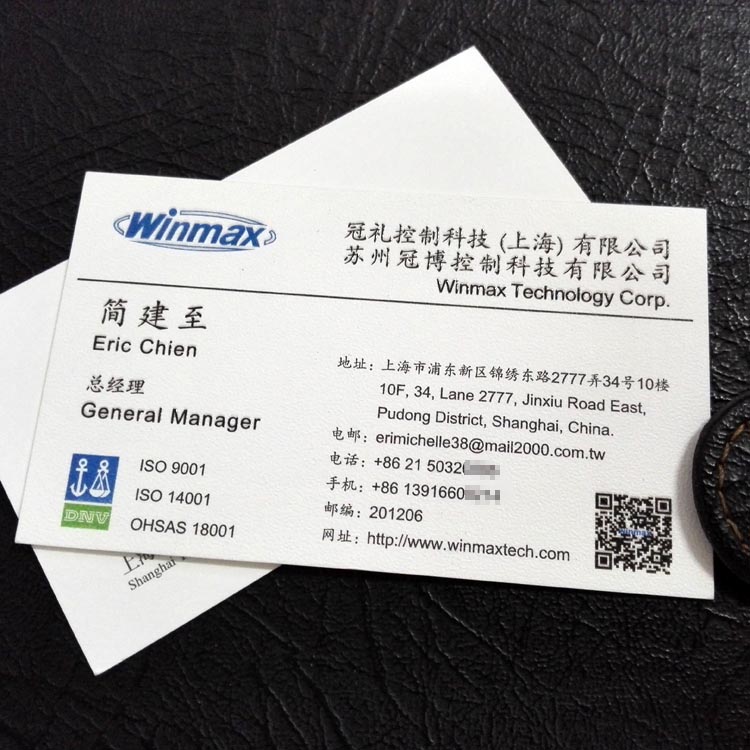 印刷方式:专色印刷; 纸张:446克雅冠纹面; 工艺:烫金; 分类:高档名片印刷